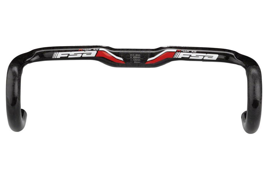 FSA K-Wing Compact Drop Handlebars feature UD carbon construction with kevlar reinforced and textured clamping areas, and a size -specific "wing" section.