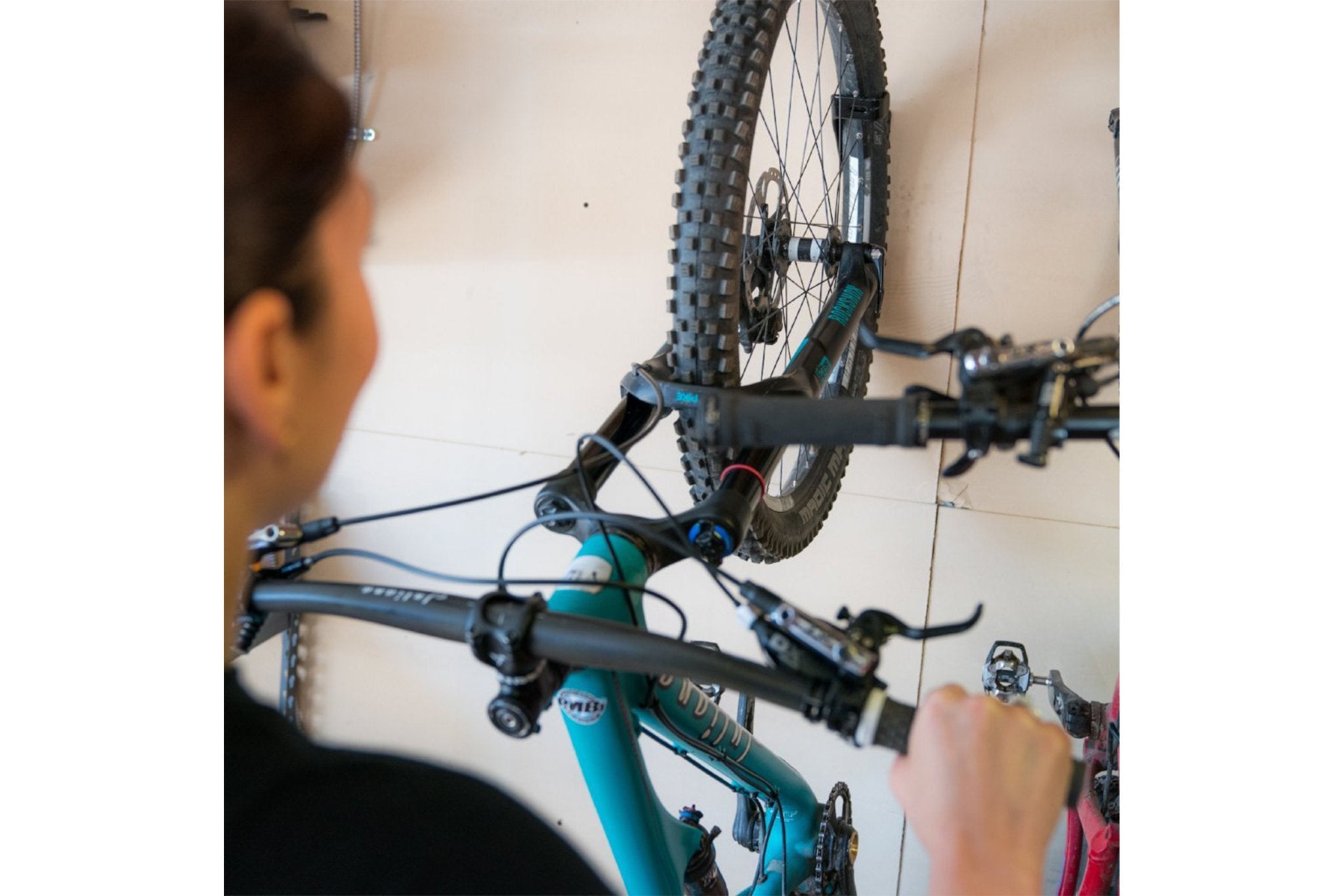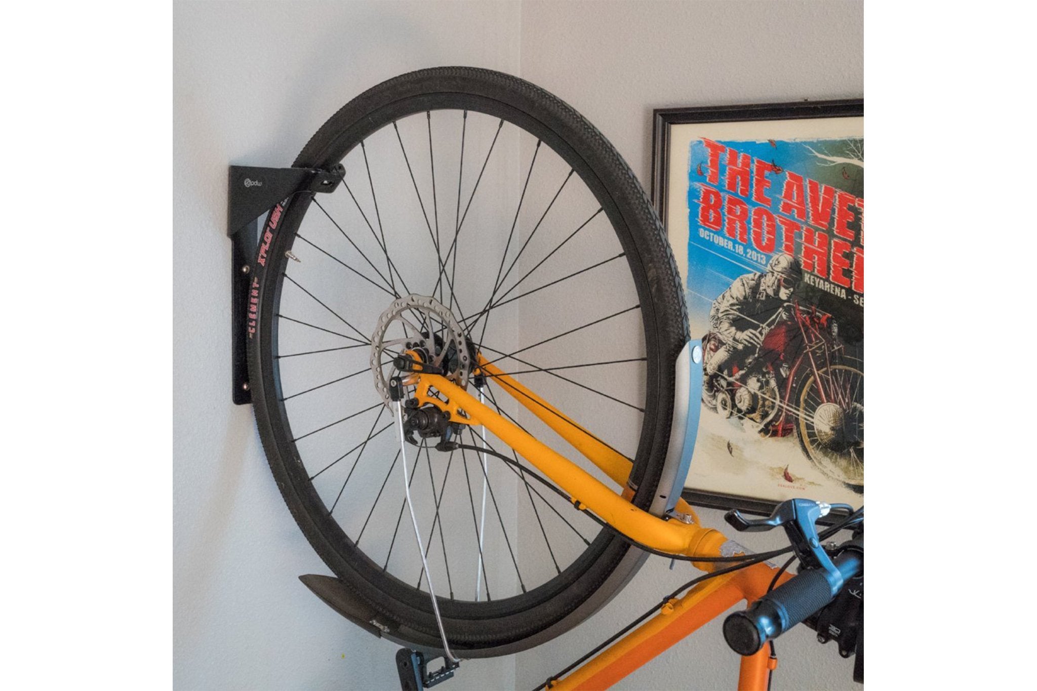 The PDW Hooptie Hook is made of tough hardened steel, boasts a bombproof powder-coated finish, and a durable rubber coating for scratch-free storage. The Hooptie hook fits up to a 2.5" tire and can support up to 33lbs (15kg) of weight. Built to last and made to look good, in your living room, garage, or hoarders shed, the Hooptie Hook is the perfect thoughtful solution for bicycle storage.