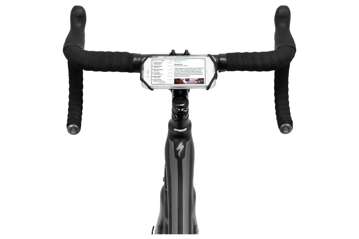 The Wraptor offers edge-to-edge screen visibility while holding phones securely, even over rough terrain. Designed to quickly attach and detach from the bar, the base easily rotates between landscape and portrait modes for maximum viewing adjustability.